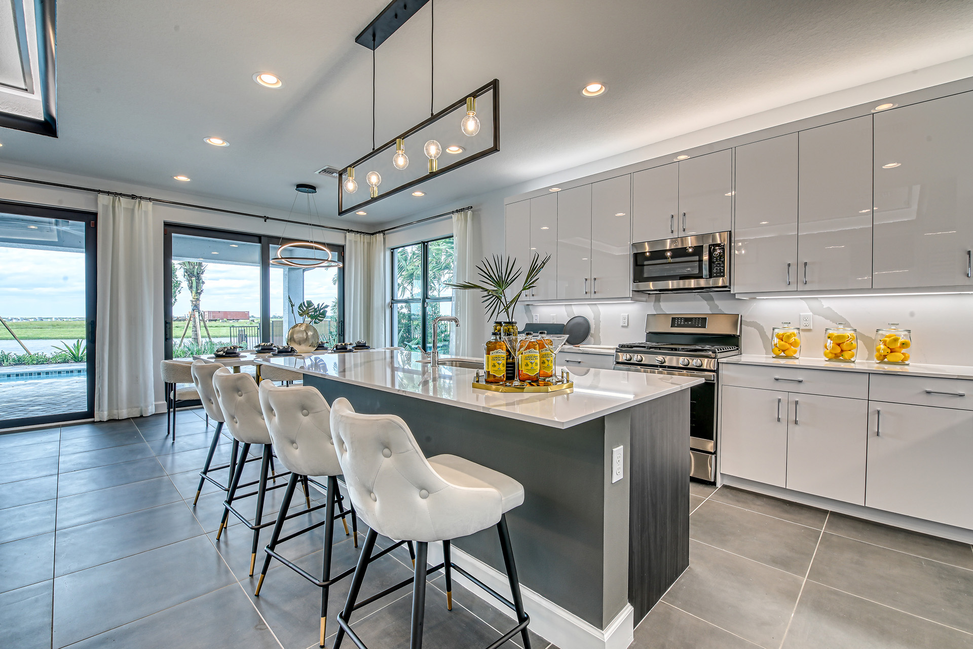 Kitchen Cabinets: Floor Plan Layout: Level VI: Bistra High Gloss Acrylic Starlite White Hardware: 5536726